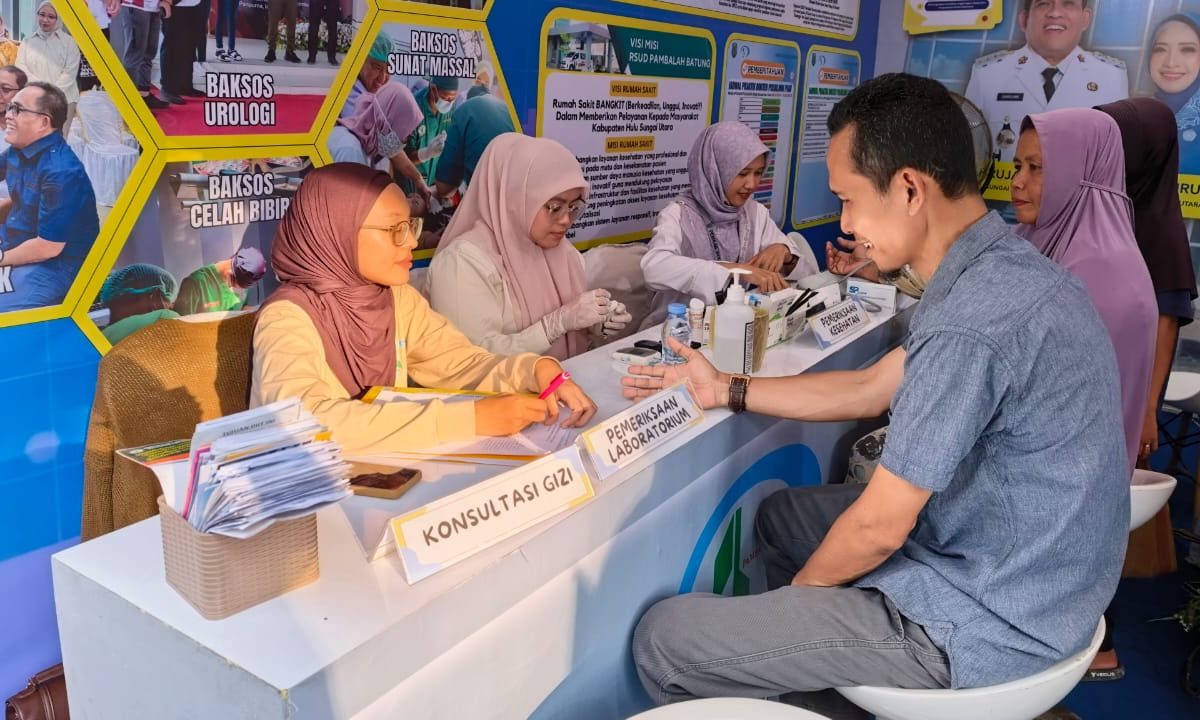 Berbeda dari tahun sebelumnya, RSUD Pambalah Batung memberikan pelayanan ekstra seperti Cek Kesehatan Gratis (CKG). Tidak hanya sekadar hasil tes, pengunjung bisa langsung berkonsultasi dengan Dokter Spesialis yang siaga selama stand dibuka.