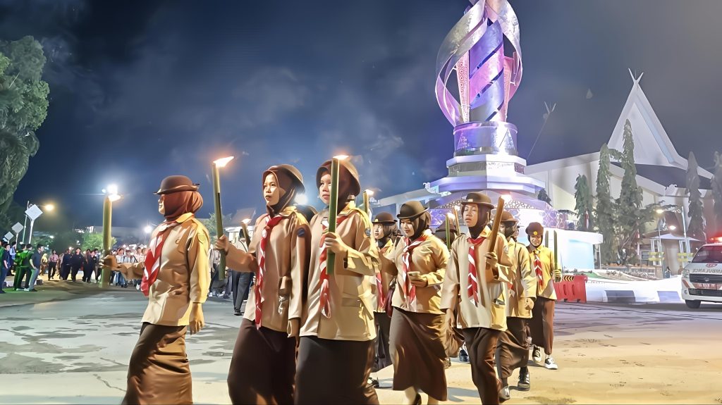 Pada kegiatan yang dipusatkan di seputaran tugu Sholawat ini, dipimpin oleh Dandim 1001/ HSU – BLG Kav Gunantyo Ady Wiryawan selaku inspektur upacara, sekaligus memimpin penyalaan obor pertama kepada tiga anggota Pramuka sebagai simbol menyambut semangat peringatan HUT RI ke-80 RI 2025 di HSU.