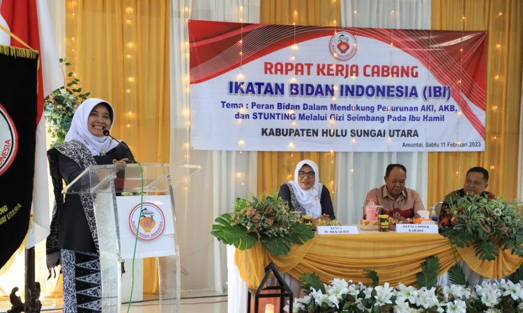 AMUNTAI - Peran Bidan dalam mendukung penurunan Angka Kematian Ibu (AKI) Angka Kematian Bayi (AKB) dan Stunting melalui gizi seimbang pada ibu hamil menjadi tema utama seminar dan Rapat kerja cabang (Rakercab)ke-VII Ikatan Bidan Indonesia (IBI) Kabupaten Hulu Sungai Utara (HSU) yang digelar di aula DPPKB HSU, Sabtu (11/2/2023). Rakercab...