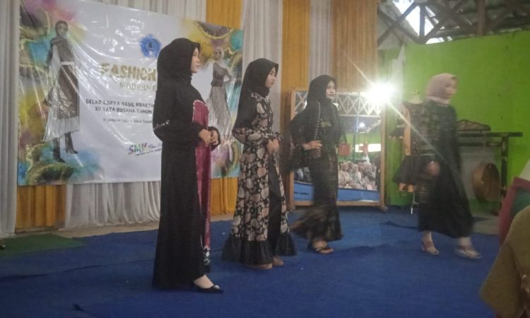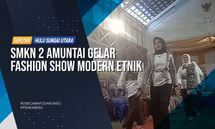 AMUNTAI - Berbagai rancangan busana bernuansa modern etnik ditampilkan siswa-siswi SMK Negeri 2 Amuntai dalam fashion show yang digelar di aula SMKN 2 Amuntai, Selasa (17/1/2023). Fashion show ini gelar dalam rangka menampilkan Gelar karya hasil Praktik Kerja Lapangan (PKL) kompetensi keahlian tata busana kelas XII SMK Negeri 2 Amuntai...