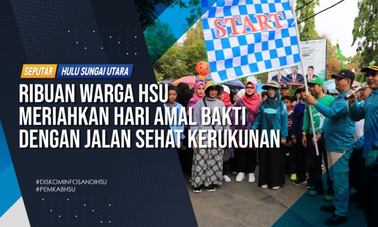 AMUNTAI - Ribuan warga ikut memeriahkan jalan santai bertajuk ‘Jalan Sehat Kerukunan’ yang digelar Kantor Kemenag Kabupaten Hulu Sungai Utara (HSU) dalam rangka menyambut Hari Amal Bakti (HAB) ke-77 Kementerian Agama Tahun 2023. Jalan sehat kerukunan tersebut dilepas oleh Penjabat (Pj) Bupati HSU R Suria Fadliansyah didampingi unsur Forkopimda HSU....