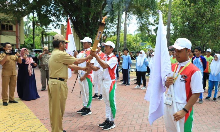 DITERIMA PLH BUPATI HSU, API OBOR PORPROV XI KALSEL DISAMBUT SEMARAK