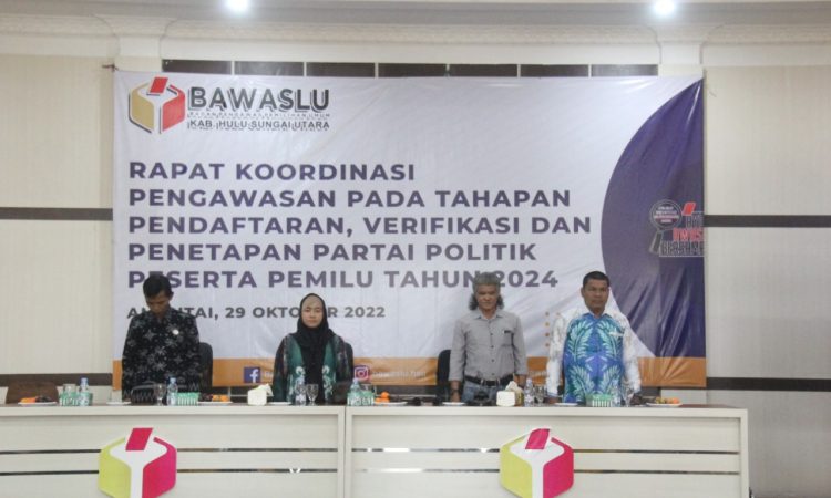 AMUNTAI - Badan Pengawas Pemilu (Bawaslu) Kabupaten Hulu Sungai Utara (HSU), mengajak partai politik (parpol) untuk dapat memberikan pendidikan politik kepada anggota atau masyarakat di daerah demi mensukseskan pemilu di tahun 2024. Hal tersebut disampaikan Ketua Bawaslu HSU, Syardani, saat Rapat koordinasi Pengawasan pada tahapan pendaftaran verifikasi dan penetapan partai...