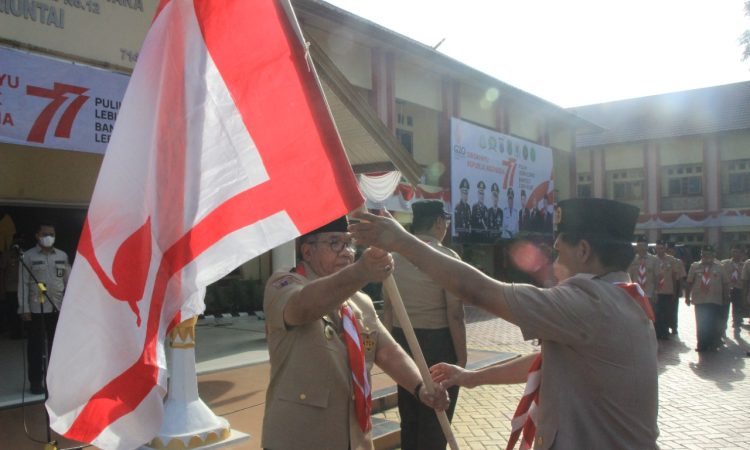 AMUNTAI - Pelaksana Tugas (Plt) Bupati Hulu Sungai Utara (HSU), Husairi Abdi selaku Ketua Majelis Pembimbing Cabang (Mabicab) Gerakan Pramuka HSU melepas peserta Jambore Nasional XI (Jamnas XI) Kontingen HSU, di Halaman Kantor Bupati HSU, Kamis (4/8/2022). Jamnas akan berlangsung selama satu minggu mulai 14-21 Agustus 2022 di Bumi Perkemahan...