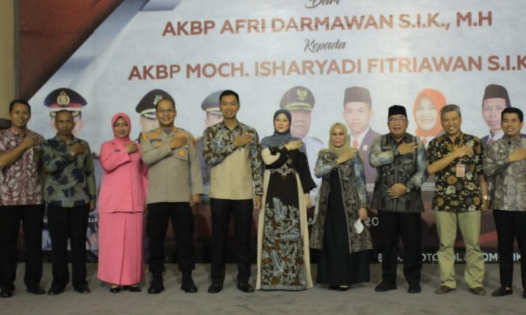 AMUNTAI - Pemerintah Kabupaten Hulu Sungai Utara (HSU) menggelar pisah sambut Kapolres HSU dari AKBP Afri Darmawan S.I.K, M.H kepada AKBP Moch Isharyadi Fitriawan S.I.K di Aula Idham Chalid, Jumat (8/7/2022). Acara pisah sambut ini juga turut dihadiri, Pelaksana Tugas (Plt) Bupati HSU, Husairi Abdi, Wakil Ketua TP PKK, unsur...