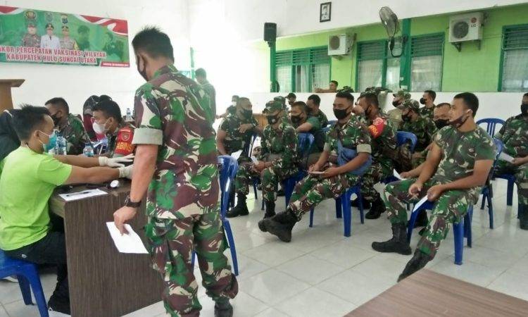 AMUNTAI- Puluhan prajurit TNI dari Kodim 1001/HSU-BLG mulai menjalani vaksinasi Booster atau vaksinasi dosis ketiga yang diperuntukan bagi personel Kodim 1001/HSU-BLG. Dandim 1001/HSU-BLG Letkol Inf Aldin Hadi mengungkapkan hari ini anggotanya mulai mengikuti vaksin dosis ketiga sebagai upaya untuk memperkuat immunity "Pelaksanaannya dimaksimalkan hari ini, jika belum selesai akan dilanjut...