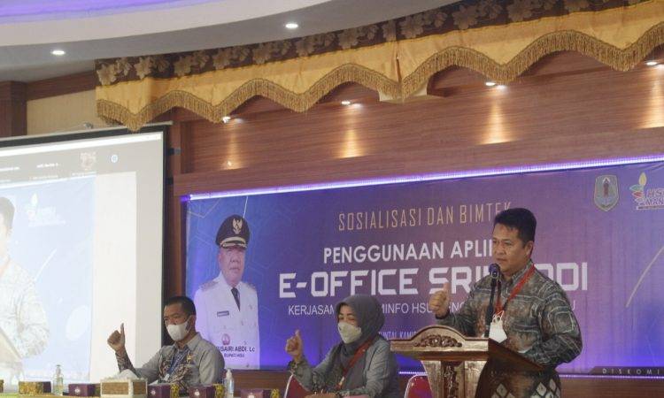 AMUNTAI - Pemerintah Kabupaten Hulu Sungai Utara (HSU) melalui Dinas Komunikasi dan Informatika (Diskominfo) bekerjasama dengan Dinas Perpustakaan dan Kearsipan (Dispersip) menggelar bimbingan teknis (Bimtek) penggunaan aplikasi e-office sistem informasi kearsipan dinamis terintegrasi (SRIKANDI) di lingkungan Pemkab HSU, di Aula Dispersip HSU, Kamis (9/12/2021). Plt Asisten Pemerintahan dan Kesejahteraan Rakyat...