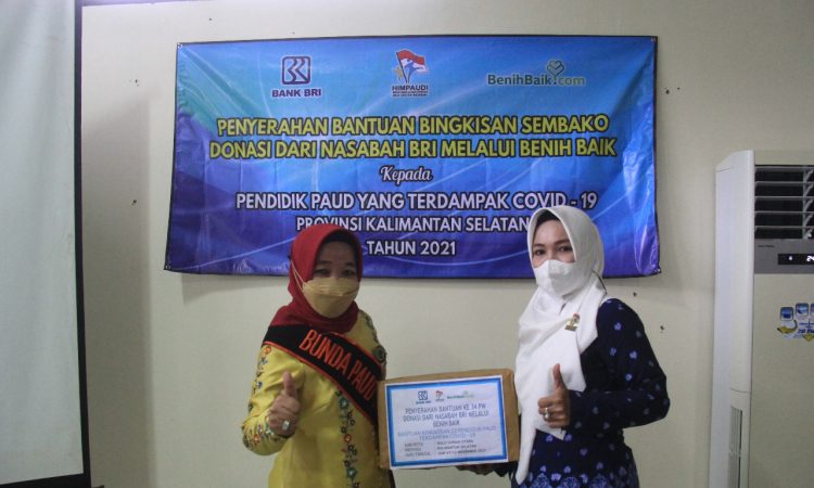 AMUNTAI - Bunda Paud Kabupaten Hulu Sungai Utara (HSU) Hj Anisah Rasyidah Wahid salurkan bantuan bingkisan sembako dari Bank BRI dan pimpinan pusat Himpaudi untuk tenaga pendidik Paud yang terdampak Covid-19 di Kabupaten HSU, di Aula Disdikbud HSU, Jumat (12/11/2021). Dalam sambutannya Anisah menyampaikan, ribuan terimakasih atas bantuan yang diberikan...