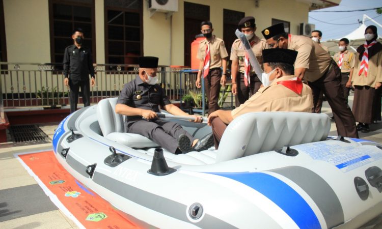 AMUNTAI - Jajajaran Pengurus Kwartir Pramuka atau Kwarcab Hulu Sungai Utara (HSU) mendapatkan bantuan satu buah perahu karet dari Kwarda Kalimantan Selatan (Kalsel), di Rumah Dinas Bupati HSU, Selasa (12/10/2021). Penyerahan bantuan perahu karet langsung diserahkan oleh Bupati HSU H Abdul Wahid HK selaku Ketua Mabicab Gerakan Pramuka HSU kepada...