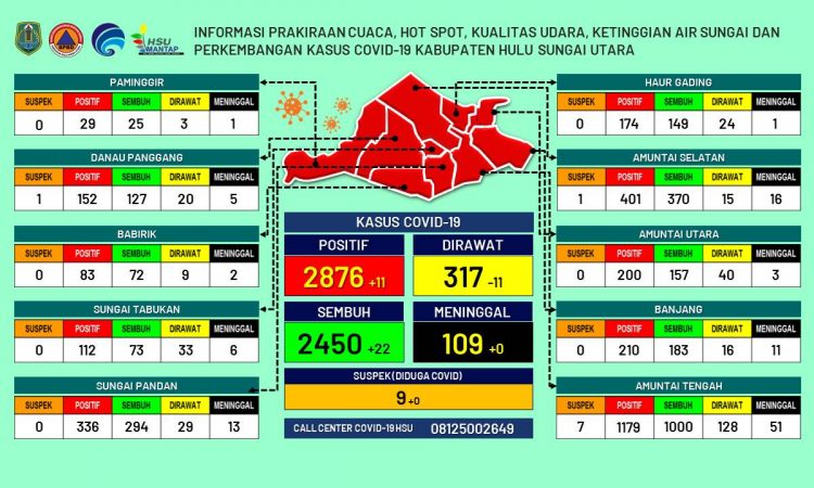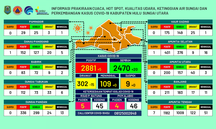AMUNTAI - Update informasi prakiraan cuaca, hot spot, kualitas udara, ketinggian air sungai dan kasus Covid-19 Kabupaten Hulu Sungai Utara per tanggal 3 September 2021 pukul 16.30 WITA....
