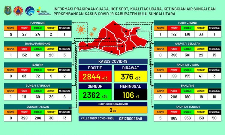 AMUNTAI - Update informasi prakiraan cuaca, hot spot, kualitas udara, ketinggian air sungai dan kasus Covid-19 Kabupaten Hulu Sungai Utara per tanggal 28 Agustus 2021 pukul 16.30 WITA....