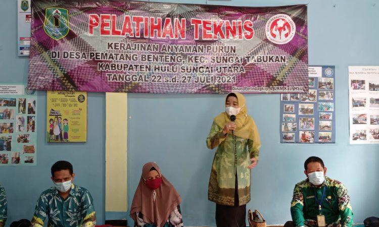 AMUNTAI - Sebanyak 20 peserta mengikuti Pelatihan Teknis Kerajinan Anyaman Purun yang diselenggarakan Dinas Perindustrian Perdagangan Koperasi dan UKM (Disperindagkop-UKM) Hulu Sungai Utara (HSU) di Kantor Desa Pematang Benteng, Kamis (22/7/2021). Pelatihan teknis kerajianan anyaman purun berlangsung selama 6 hari dari tanggal 22 sampai 27 Juli 2021 dengan dibuka secara...