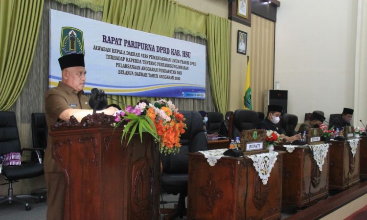 AMUNTAI - Bupati Hulu Sungai Utara (HSU) H. Abdul Wahid HK menilai merosotnya Pendapatan Asli Daerah (PAD) tahun 2020 dan berkurangnya dana transfer dari pemerintah pusat lantaran akibat adanya Wabah Covid-19 yang selama ini melanda, tak terkecuali di Kabupaten Hulu Sungai Utara. Hal ini seperti diungkapkannya saat rapat paripurna DPRD...