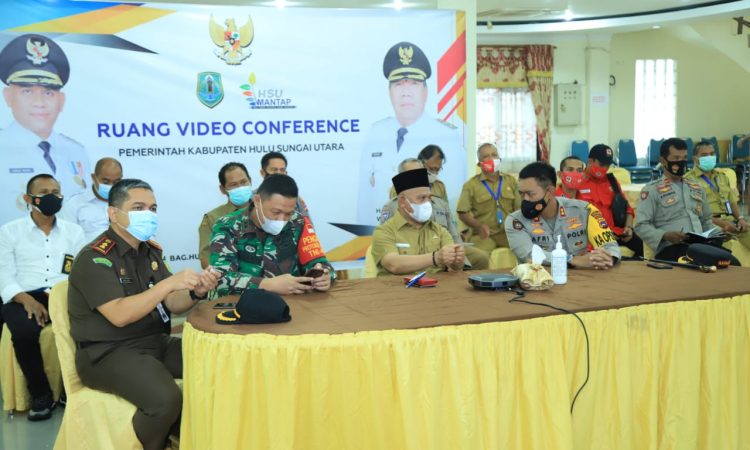 BUPATI HSU IKUTI VIDCON ARAHAN PRESIDEN RI DENGAN AGENDA RAKOR PENGENDALIAN KARHUTLA