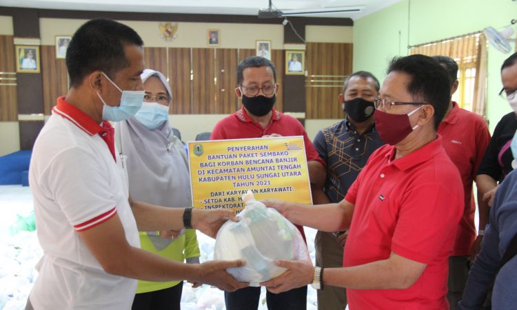 AMUNTAI - Pemerintah Kabupaten (Pemkab) Hulu Sungai Utara (HSU) melalui Sekretariat Daerah Kabupaten HSU bersama Inspektorat HSU dan Dinas Pemberdayaan Perempuan dan Perlindungan Anak (DPPPA) HSU salurkan bantuan kemanusiaan untuk korban banjir di Kecamatan Amuntai Tengah, Jum'at (22/01/2021). Bertempat di Kantor Kecamatan Amuntai Tengah, sebanyak 200 paket sembako diserahkan secara...