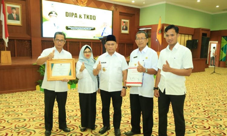 BUPATI WAHID TERIMA PENGHARGAAN KATEGORI PENGELOLAAN DAK FISIK DAN DANA DESA TERBAIK