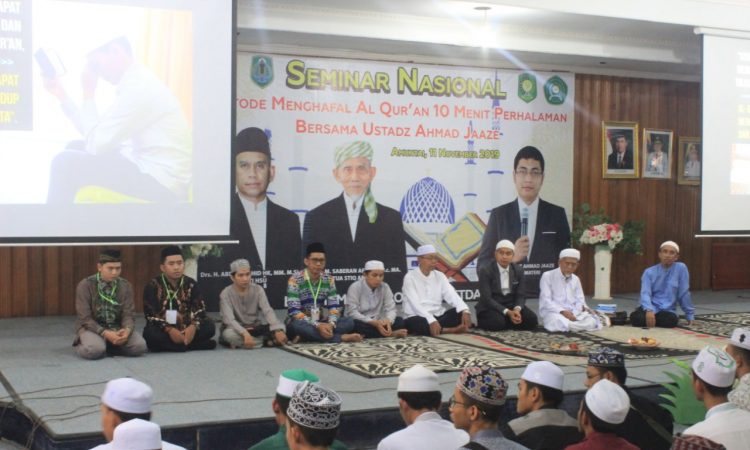 AMUNTAI - Ratusan mahasiswa dari Sekolah Tinggi Ilmu Al-Qur'an (STIQ) Rakha Amuntai Kabupaten Hulu Sungai Utara (HSU) tampak antusias mengikuti kegiatan Seminar Nasional Metode Menghafal Al-Qur'an 10 menit per halaman, bersama Ustadz Ahmad Jaaze Elraaze dari Bandung, seorang Hafiz Al-Qur’an 30 juz sejak umur 17 tahun, bertempat di aula BPKAD HSU,...