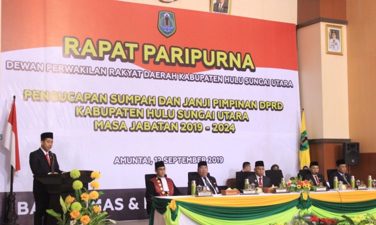 AMUNTAI - Anggota Dewan Perwakilan Rakyat Daerah (DPRD) mempunyai tugas dan tujuan sebagai pengemban amanat rakyat, sekaligus memperjuangkan aspirasi dan kepentingan masyarakat guna mewujudkan pembangunan di daerah. Demikian disampaikan Ketua DPRD Kabupaten Hulu Sungai Utara (HSU) Almien Ashar Safari usai dilantik dan diambil sumpahnya sebagai Ketua DPRD HSU periode 2019...