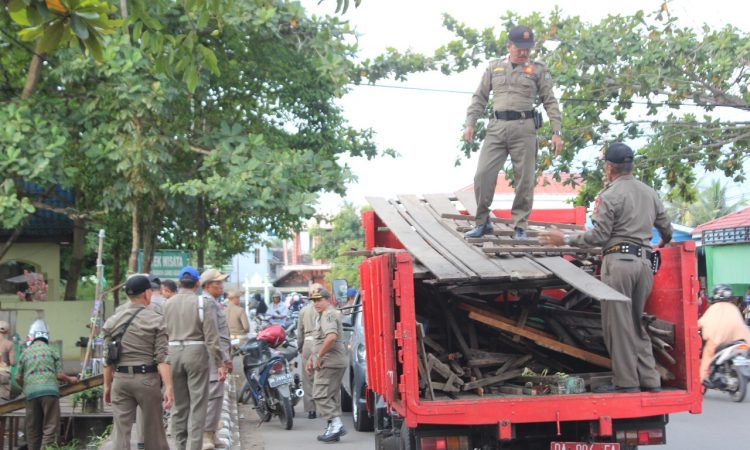 AMUNTAI - Satuan Polisi Pamong Praja (Satpol PP) Kabupaten Hulu Sungai Utara (HSU) dibantu oleh Dinas Perhubungan, TNI, dan Polisi melakukan penertiban pasar di kawasan Candi Agung Amuntai, Kamis (11/7). Plt Kepala Satpol PP HSU Jumadi mengatakan, penertiban di sekitar pasar kawasan Candi Agung Amuntai dalam rangka memindahkan para pedagang...