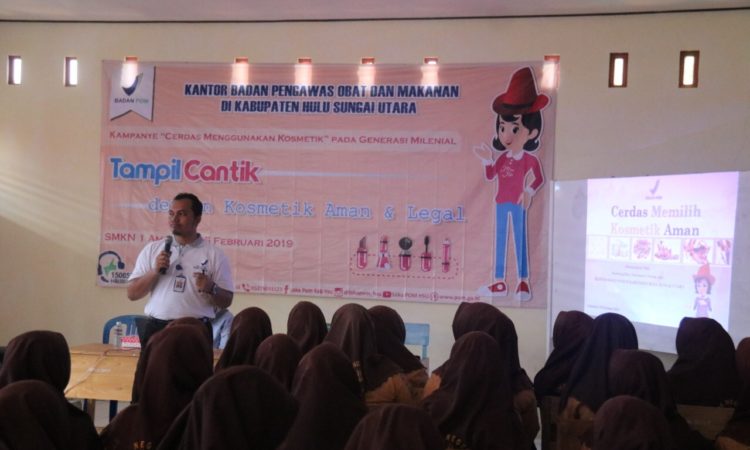 Amuntai - Badan Pengawas Obat dan Makanan (BPOM) Kabupaten Hulu Sungai Utara (HSU) sosialisasikan kosmetik yang mengandung bahan berbahaya di kalangan pelajar. Kegiatan dalam bentuk kampanye cerdas menggunakan kosmetik pada generasi milenial tersebut dilaksanakan di SMKN 1 Amuntai, Jum'at (15/2). "Kami dari Kantor Badan POM hadir di sini dalam rangka...