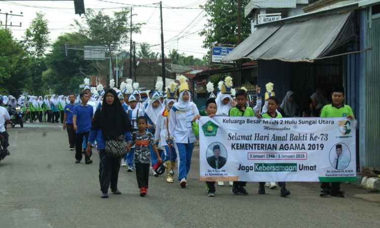 Amuntai - Ratusan pelajar mengikuti jalan sehat yang digelar oleh Kantor Kementerian Agama (Kemenag) Kabupaten Hulu Sungai Utara (HSU) dalam rangka memeriahkan Hari Amal Bakti (HAB) ke-73 Kementerian Agama RI tahun 2019. Kegiatan jalan sehat yang menempuh rute seputar kota Amuntai ini dilepas oleh Bupati HSU H. Abdul Wahid HK...