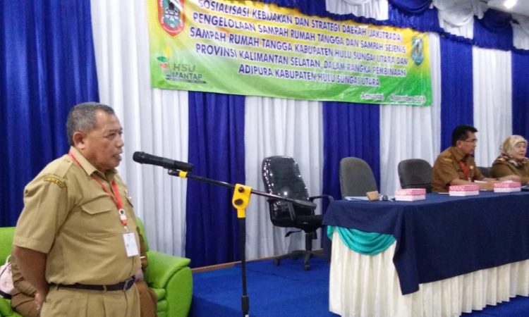 Amuntai - Dinas Perumahan, Kawasan Pemukiman, dan Lingkungan Hidup (Disperkim LH) Kabupaten Hulu Sungai Utara (HSU) sosialisasikan kebijakan dan strategi daerah (Jakstrada) pengelolaan sampah rumah tangga dan sampah sejenis sampah rumah tangga, Senin (19/10). Sosialisasi ini dalam rangka pembinaan Adipura Kabupaten HSU, dihadiri perwakilan SKPD, Camat, Lurah, Komunitas Hijau "Rarawa"...