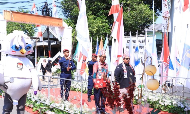 KPU HSU SAMBUT KEDATANGAN BENDERA KIRAB PEMILU 2024 DARI KPU HST