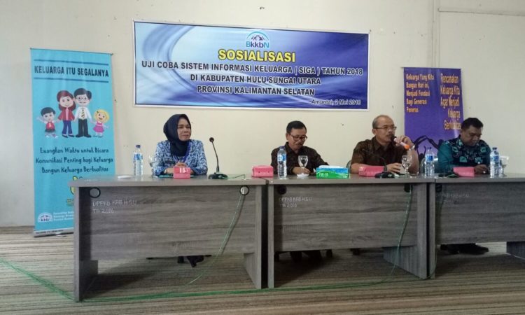 Amuntai - Badan Kependudukan dan Keluarga Berencana (BKKBN) Provinsi Kalimantan Selatan melaksanakan Sosialiasi Uji Coba Sistem Informasi Keluarga (SIGA) Tahun 2018 di Kabupaten Hulu Sungai Utara (HSU), bertempat di Aula Dinas Pengendalian Penduduk dan Keluarga Berencana (DPPKB), Rabu (2/5), diikuti para penyuluh KB Kecamatan se-Kabupaten HSU. Sosialisasi ini dilaksanakan sejalan...