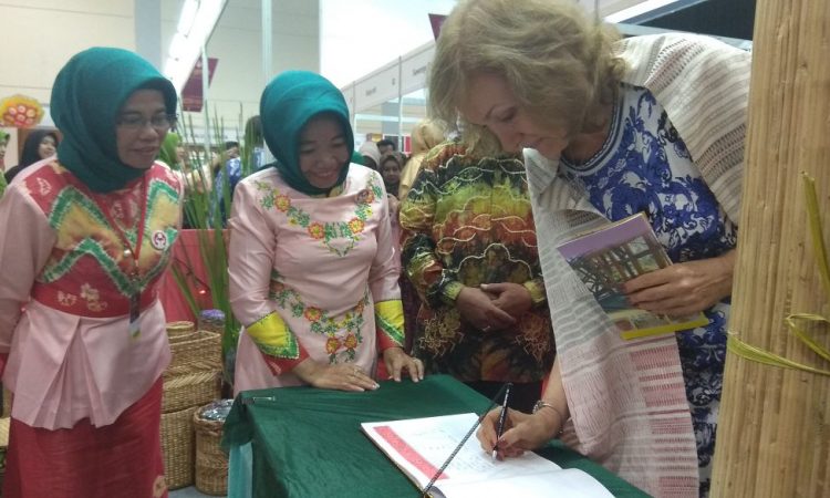 JAKARTA - Presiden Joko Widodo memukul gondang yang merupakan alat kesenian tradisional khas dari Sulawesi dengan disaksikan Pembina Dewan Kerajinan Nasional (Dekranas) Iriana Joko Widodo, Ketua Umum Dekranas Mufidah Kalla,dan Ketua Bidang Kreatif Nora Ryamizard Ryacudu pada pembukaan Pameran Kriyanusa Dekranas 2017 di Jakarta Convention Center, Jakarta, Rabu (27/9). Presiden...
