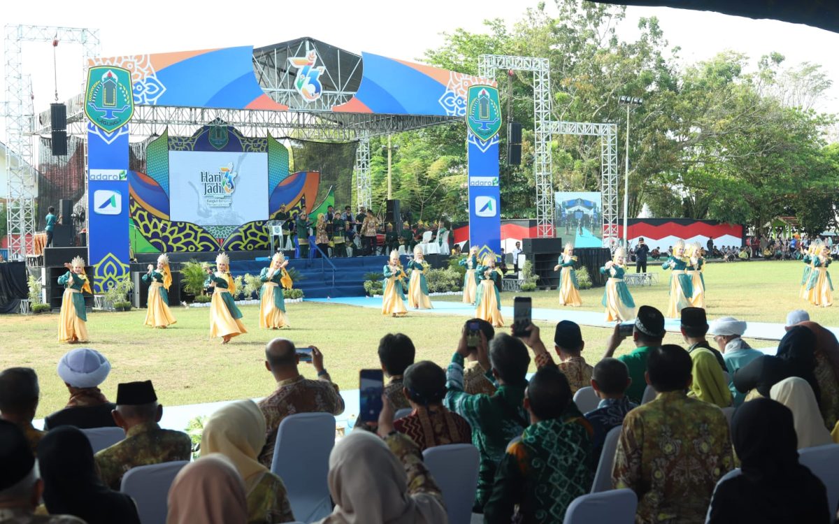 Di antaranya pertunjukan tari selamat datang, pertunjukan Polisi Cilik Banua Polres HSU, pembacaan sejarah singkat Kabupaten HSU, selayang pandang pembangunan Kabupaten HSU, penyerahan penghargaan, penandatanganan prasasti peresmian proyek-proyek di HSU tahun 2025, hingga kuliner tradisional gratis. (Diskominfosandi Wahyu)