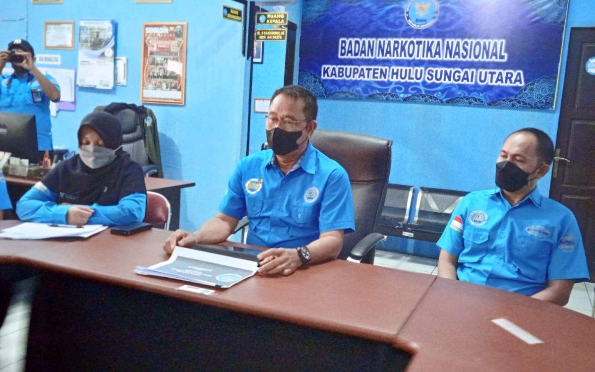 AMUNTAI – Badan Narkotika Nasional (BNN) Kabupaten Hulu Sungai Utara (HSU) menggelar kegiatan press release akhir tahun 2021, dengan mengundang awak media di Kantor BNNK HSU, Rabu(1/12/2021) sore.