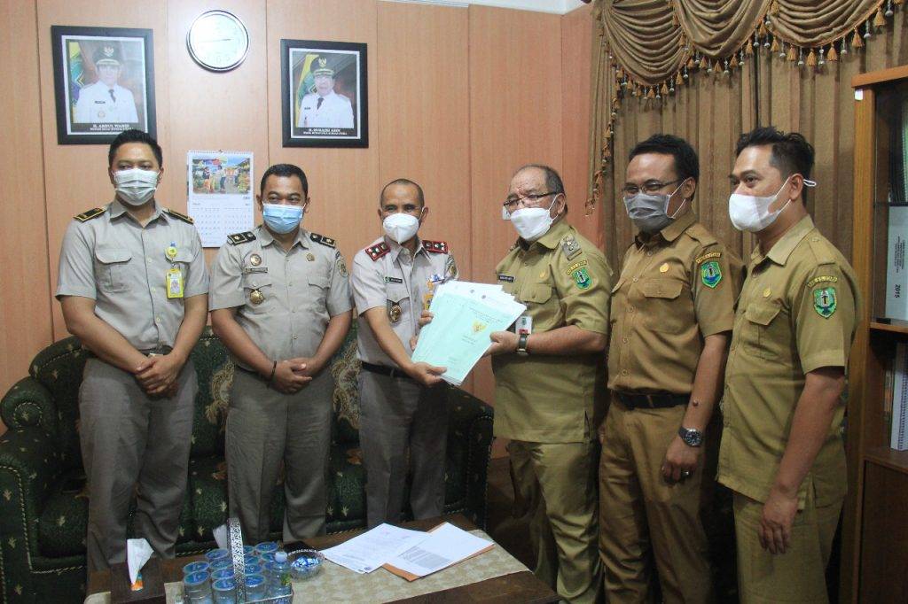 AMUNTAI – Badan Pertanahan Nasional (BPN) Kabupaten Hulu Sungai Utara (HSU) menyerahkan sertifikat lahan milik daerah kepada Pelaksana Tugas (Plt) Bupati HSU Husairi Abdi, Selasa (14/12/2021) di ruang kerjanya.