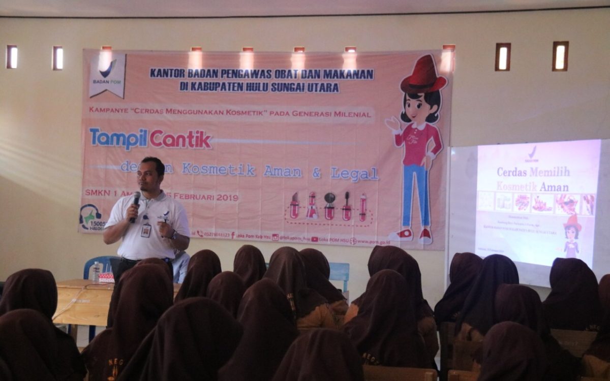 Amuntai – Badan Pengawas Obat dan Makanan (BPOM) Kabupaten Hulu Sungai Utara (HSU) sosialisasikan kosmetik yang mengandung bahan berbahaya di kalangan pelajar.