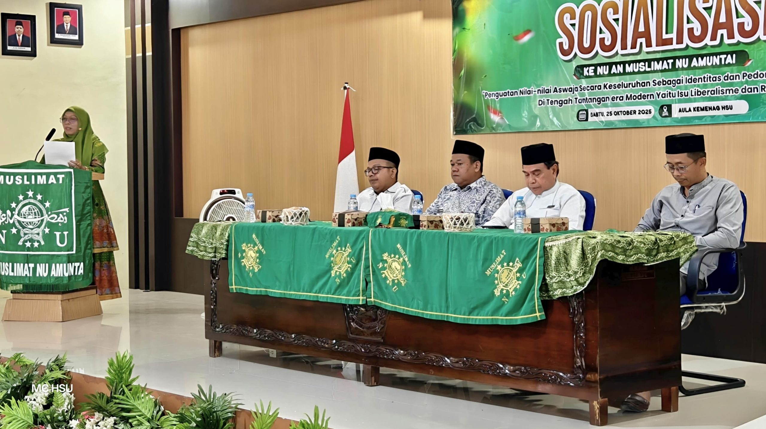 Apresiasi tersebut disampaikannya dalam kegiatan Sosialisasi ke NU an Muslimat NU Amuntai yang dilaksanakan di Aula Kantor Kemenag HSU Sabtu (25/10/2025).
