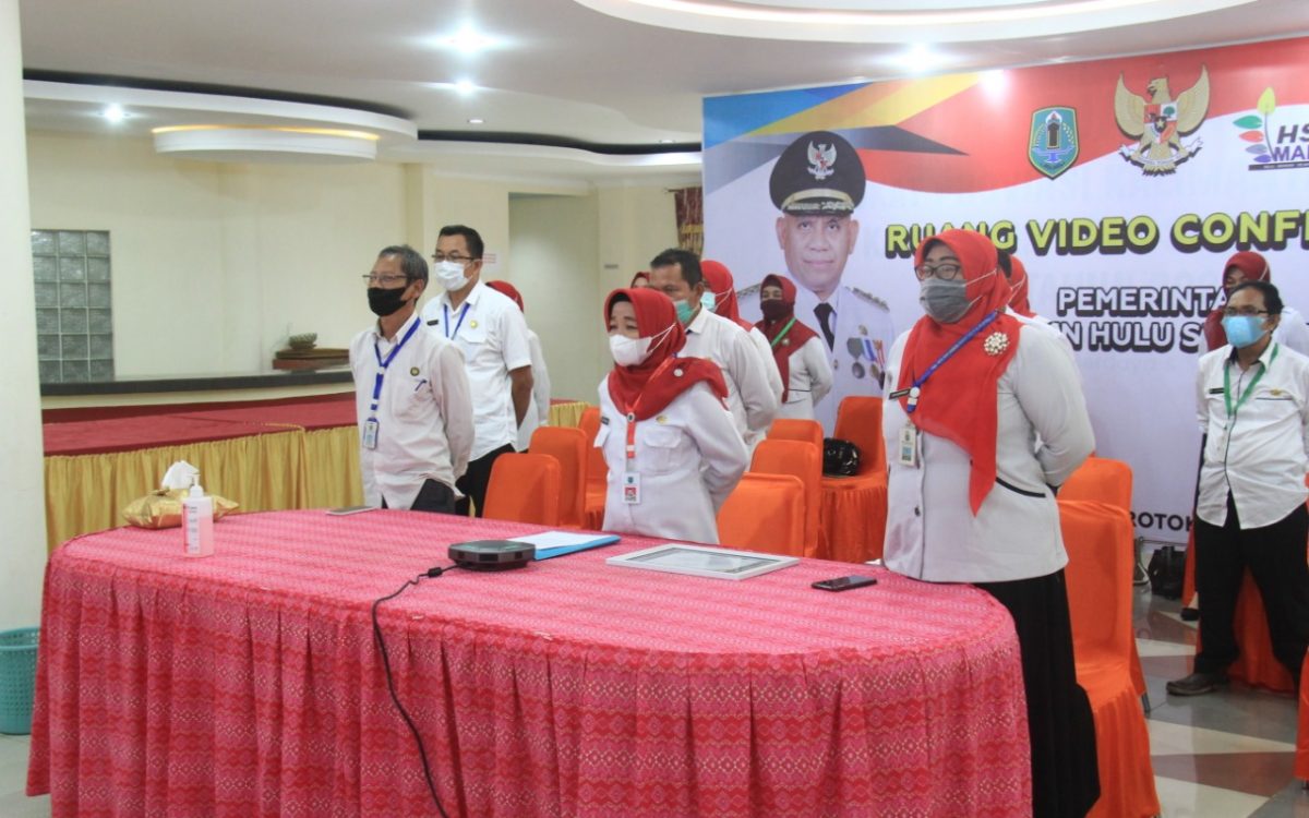 AMUNTAI – Kepala Dinas Pengendalian Penduduk dan Keluarga Berencana (DPPKB) Kabupaten Hulu Sungai Utara (HSU), Hj. Anisah Rasyidah Wahid bersama jajaran mengikuti apel Hari Keluarga Nasional (Harganas) ke-28 tahun 2021 secara virtual di mess Negara Dipa yang diselenggarakan oleh BKKBN pusat, Senin (21/6/2021).