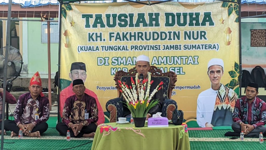 AMUNTAI – Keluarga besar SMAN 1 Amuntai melaksanakan program Tausiah Duha bersama KH Fakhruddin Nur yang datang dari Kuala Tungkal Provinsi Jambi, Kamis (14/8/2025).