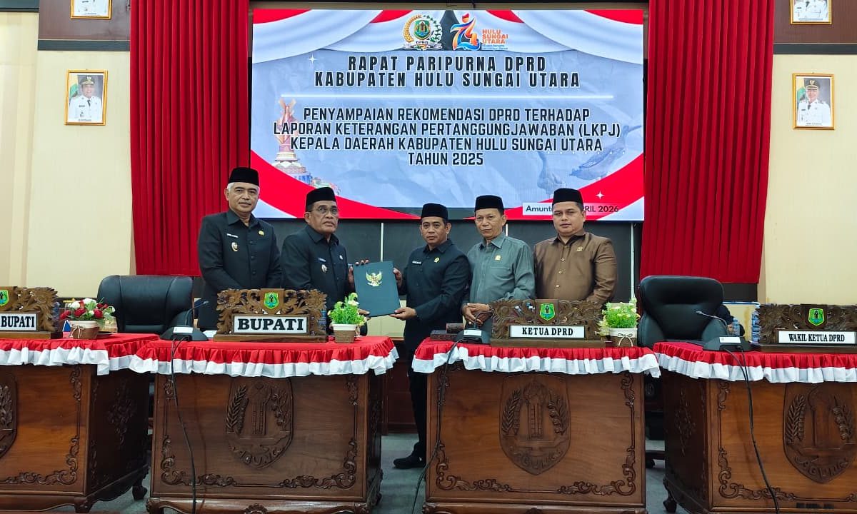 DPRD Kabupaten HSU memberikan apresiasi atas penyampaian LKPJ Kepala Daerah Tahun 2025 yang dinilai tepat waktu sebagai bentuk akuntabilitas dan transparansi penyelenggaraan pemerintahan daerah.