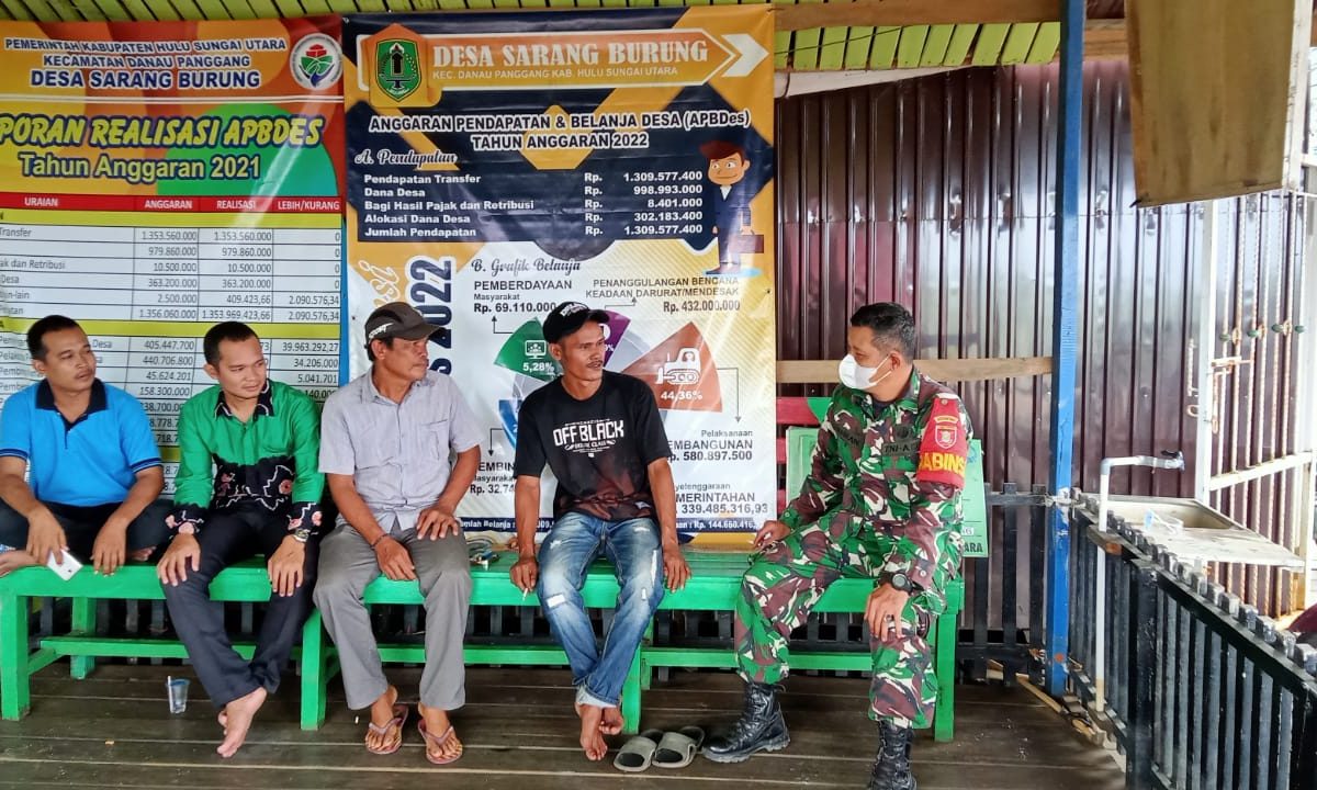 AMUNTAI – Guna mendukung tugas serta meningkatkan Kemanunggalan TNI dengan Rakyat, Babinsa Koramil 1001-11/Danau Panggang, Kodim 1001/Hulu Sungai Utara- Balangan (HSU-BLG) kerap melakukan Komunikasi Sosial (Komsos) dengan masyarakat