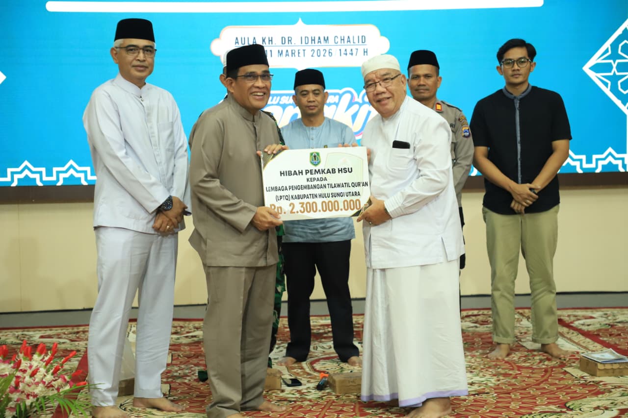 Dalam kesempatan tersebut, Bupati juga menyerahkan hibah sebesar Rp 2,3 Milyar kepada Lembaga Pengembangan Tilawatil Qur’an (LPTQ) Kabupaten HSU sebagai bentuk dukungan memajukan pendidikan dan pembinaan baca tulisan Al qur’an.