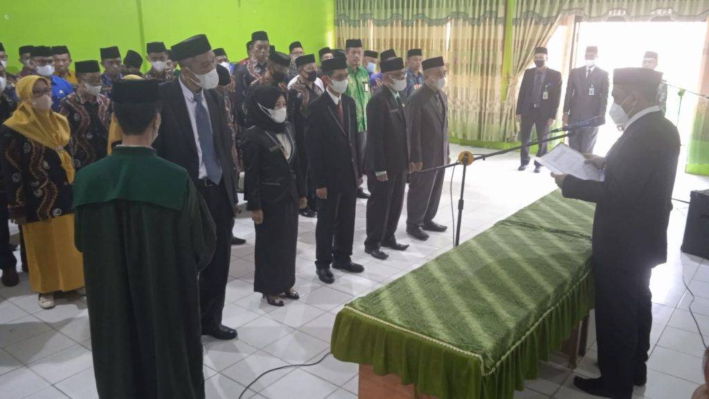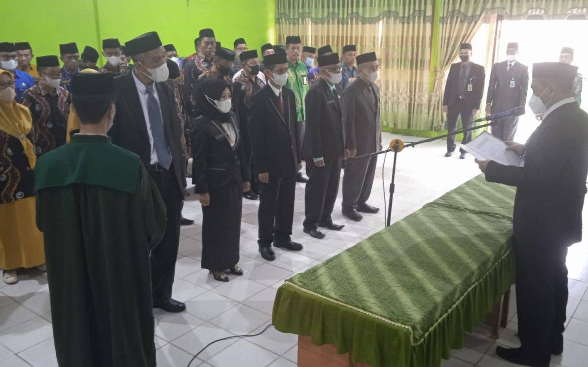 AMUNTAI – Kepala Kantor Kementerian Agama (Kankemenag) Kabupaten Hulu Sungai Utara (HSU) Ahmad Rusyadi resmi melantik 5 pejabat eselon III dan IV dilingkungan Kankemenag HSU. Jumat (27/5/2022) di Aula Kankemenag HSU.