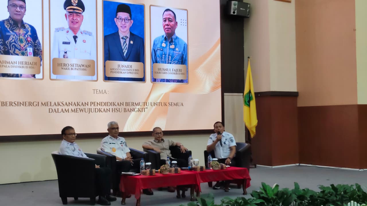 Kegiatan tersebut menghadirkan narasumber Anggota DPRD HSU Junaidi, Wakil Bupati HSU, serta Kepala Dinas Pendidikan dan Kebudayaan HSU Rahman Heriadi.