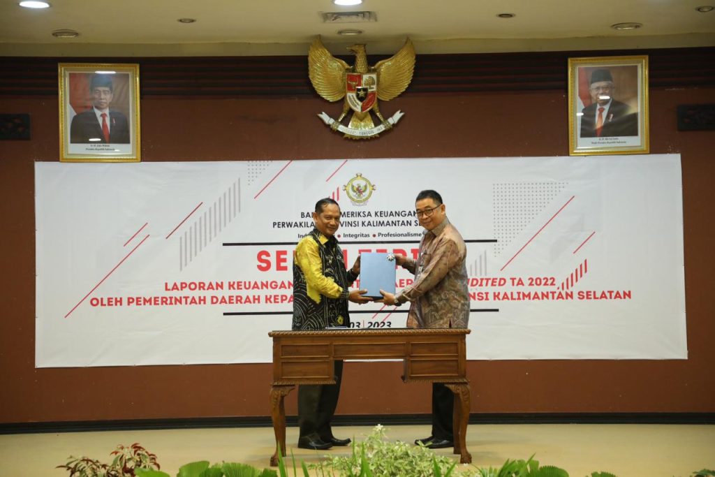 BANJARBARU – Penjabat (Pj) Bupati Hulu Sungai Utara (HSU) Raden Suria Fadliansyah, resmi menyerahkan Laporan Keuangan Pemerintah Daerah (LKPD) Pemerintah Daerah HSU Anaudited tahun anggaran 2022, kepada Badan Pemeriksa Keuangan (BPK)Perwakilan Provinsi Kalimantan Selatan (Kalsel).