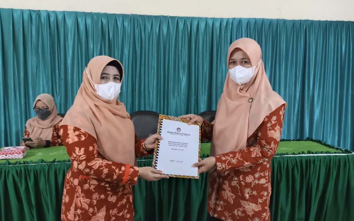 AMUNTAI – Pengurus Dharma Wanita Persatuan (DWP) Kabupaten Hulu Sungai Utara (HSU) melaksanakan Serah Terima Jabatan (Sertijab) Ketua periode 2017-2022, di Aula Sekretariat DWP HSU, Rabu (8/6/2022).
