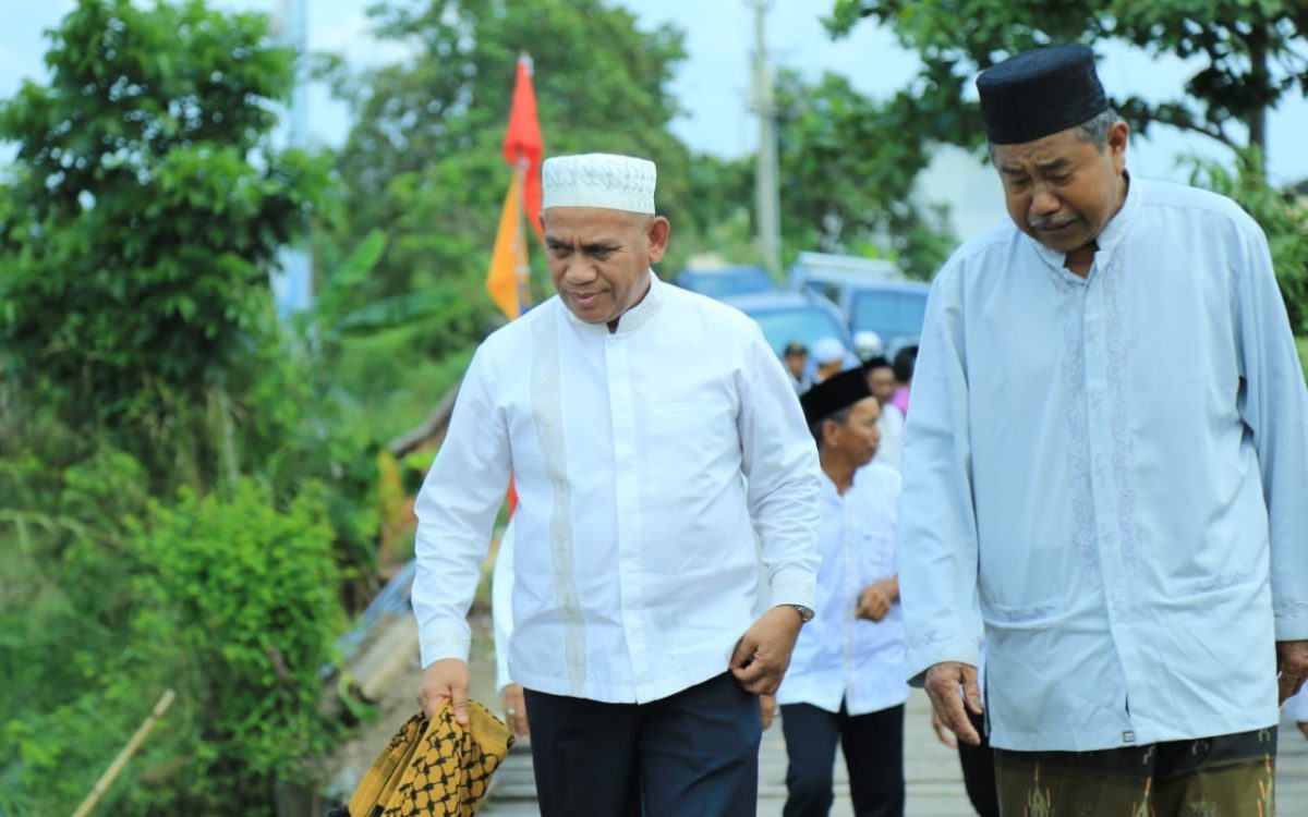 Bersama Bupati, tampak hadir pula Ketua MUI HSU KH. Said Masrawan, Plt. Camat Sungai Pandan H. Muhammad Iqbal, Tokoh Masyarakat, dan masyarakat setempat. (Humpro/tirta/henderi)
