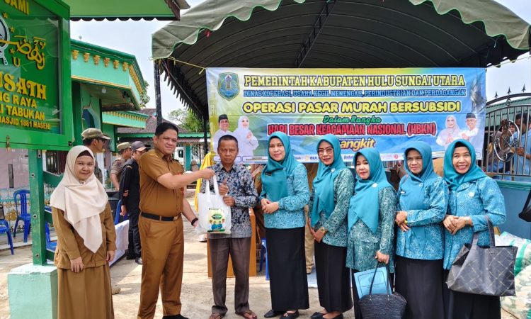 AMUNTAI – Ratusan warga memadati kegiatan pasar murah bersubsidi yang digelar oleh Dinas Koperasi, UMKM, Perindustrian dan Perdagangan (Diskuperindag) Kabupaten Hulu Sungai Utara (HSU) di halaman kantor Desa Pihaung Kecamatan Haur Gading, Selasa (10/3/2026). Kegiatan yang dilaksanakan dalam rangka menyambut Hari Besar Keagamaan Nasional (HBKN) ini menyediakan sebanyak 500...
