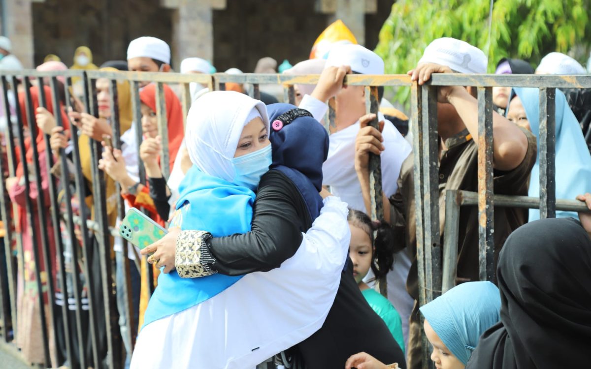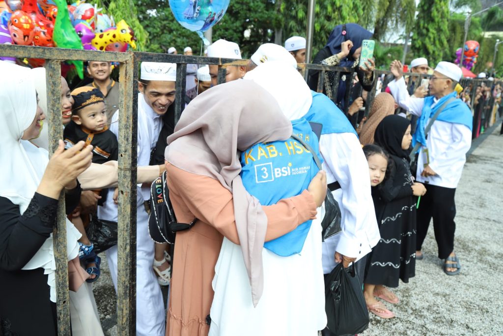 Rela antre berdesakan, para anggota keluarga JCH mulai berkumpul sejak pagi dini hari di Masjid Raya At-Taqwa, hanya untuk melepas keberangkatan jemaah calon haji menuju Baitullah.