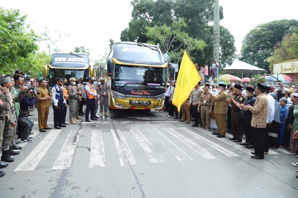 Diketahui, JCH HSU diberangkatkan menggunakan empat buah armada bus dari Masjid Raya At-Taqwa menuju Asrama Haji Banjarmasin dan dilepas langsung oleh Plt Bupati HSU beserta unsur Forkopimda. (Diskominfosandi/ricky/crew)