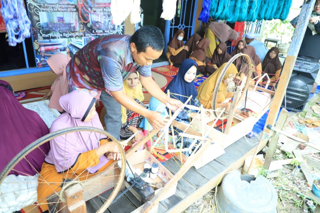 TINGKATKAN KETERAMPILAN, DINAS PERPUSTAKAAN HSU GELAR PELATIHAN PEMBUATAN TENUN