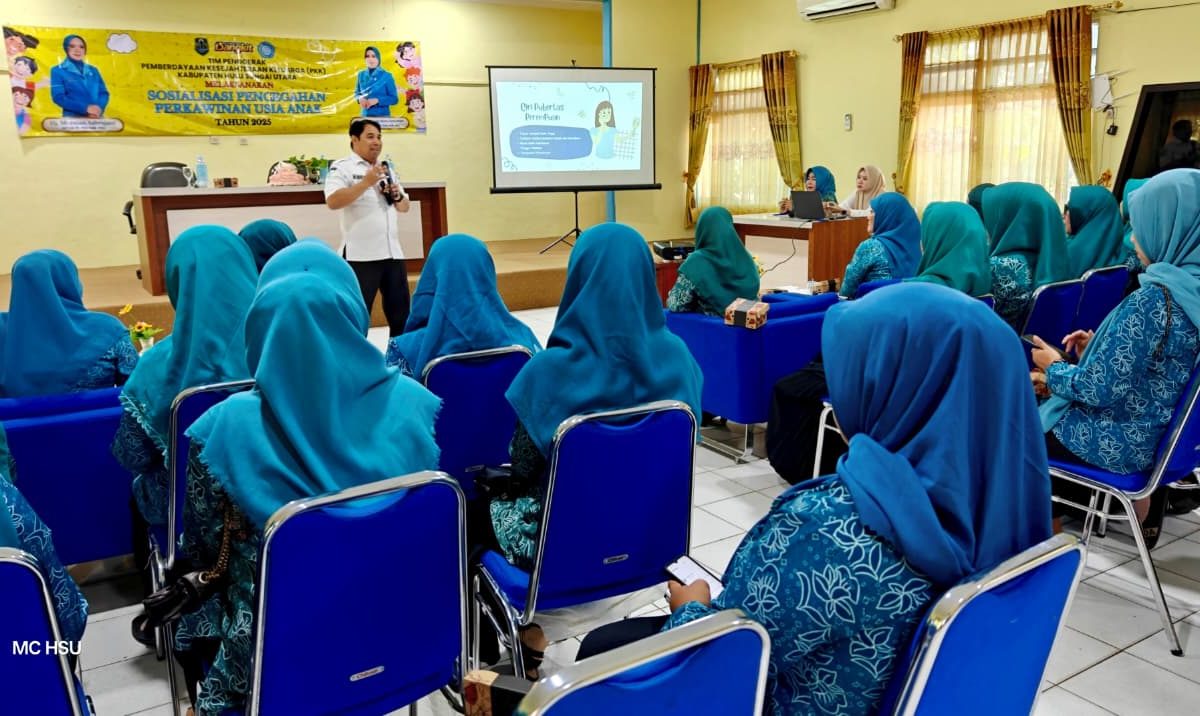 AMUNTAI – Melalui Pokja 1 Tim Penggerak (TP) PKK Kabupaten Hulu Sungai Utara (HSU) menggelar Sosialisasi Pencegahan Perkawinan Usia Anak kepada Kader PKK Pokja 1 se Kabupaten HSU di Aula Sekretariat TP – PKK lantai 2, Rabu (15/10/2025).