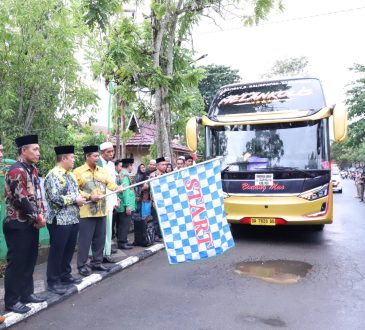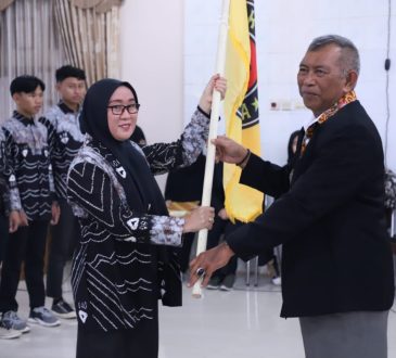 AMUNTAI - Penyerahan bendera Pataka oleh Ketua Pengprov Taekwondo Indonesia (TI) Kalimantan Selatan, Bambang Supriadi kepada Ketua TI Kabupaten Hulu...